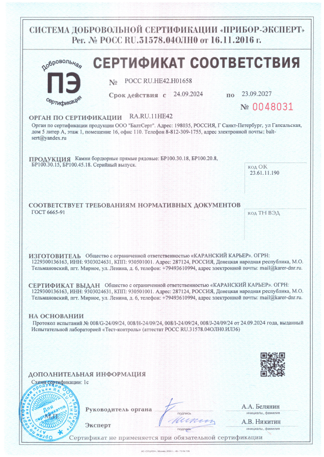 Камень бордюрный BR 100.45.18