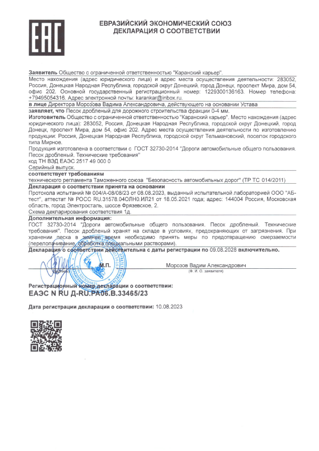 - Дорожная каменная крошка фракции 0-4 мм, дорожная каменная крошка еврофракции или дорожная каменная еврокрошка;